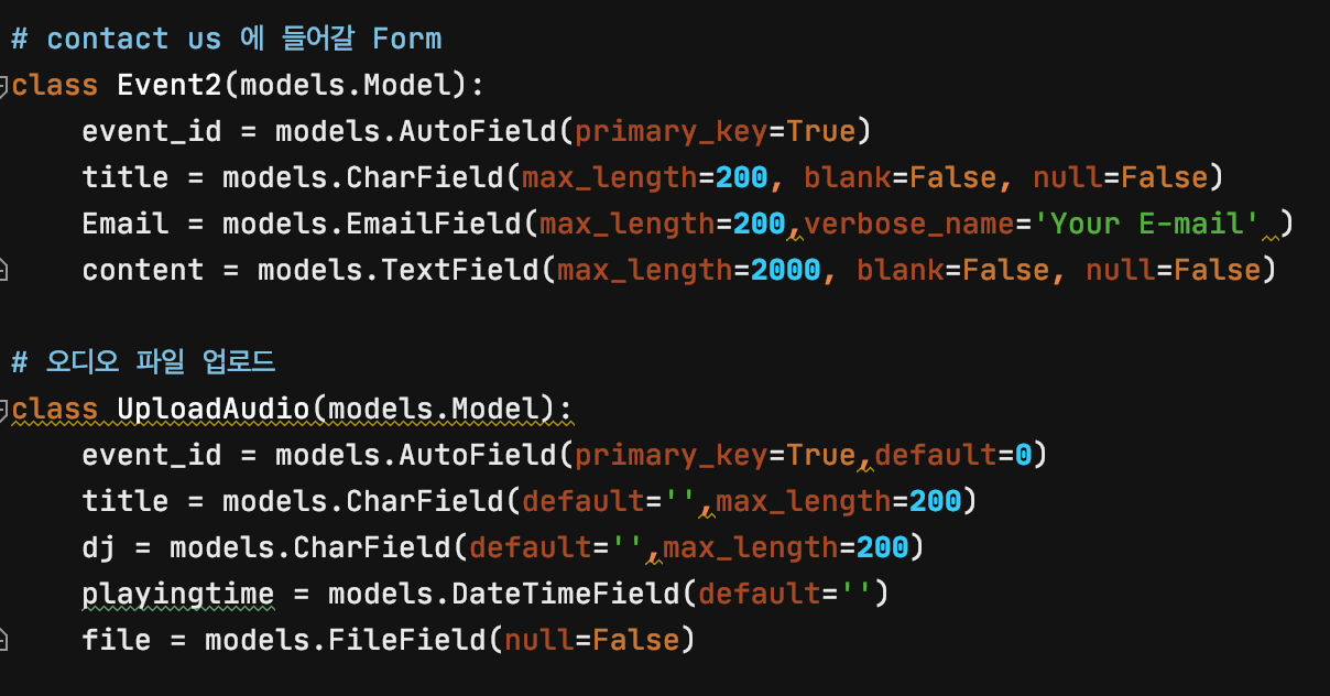 1. ๋จผ์ Django ๋ชจ๋ธ์ ์์ฑํ๋ค. (models.py)