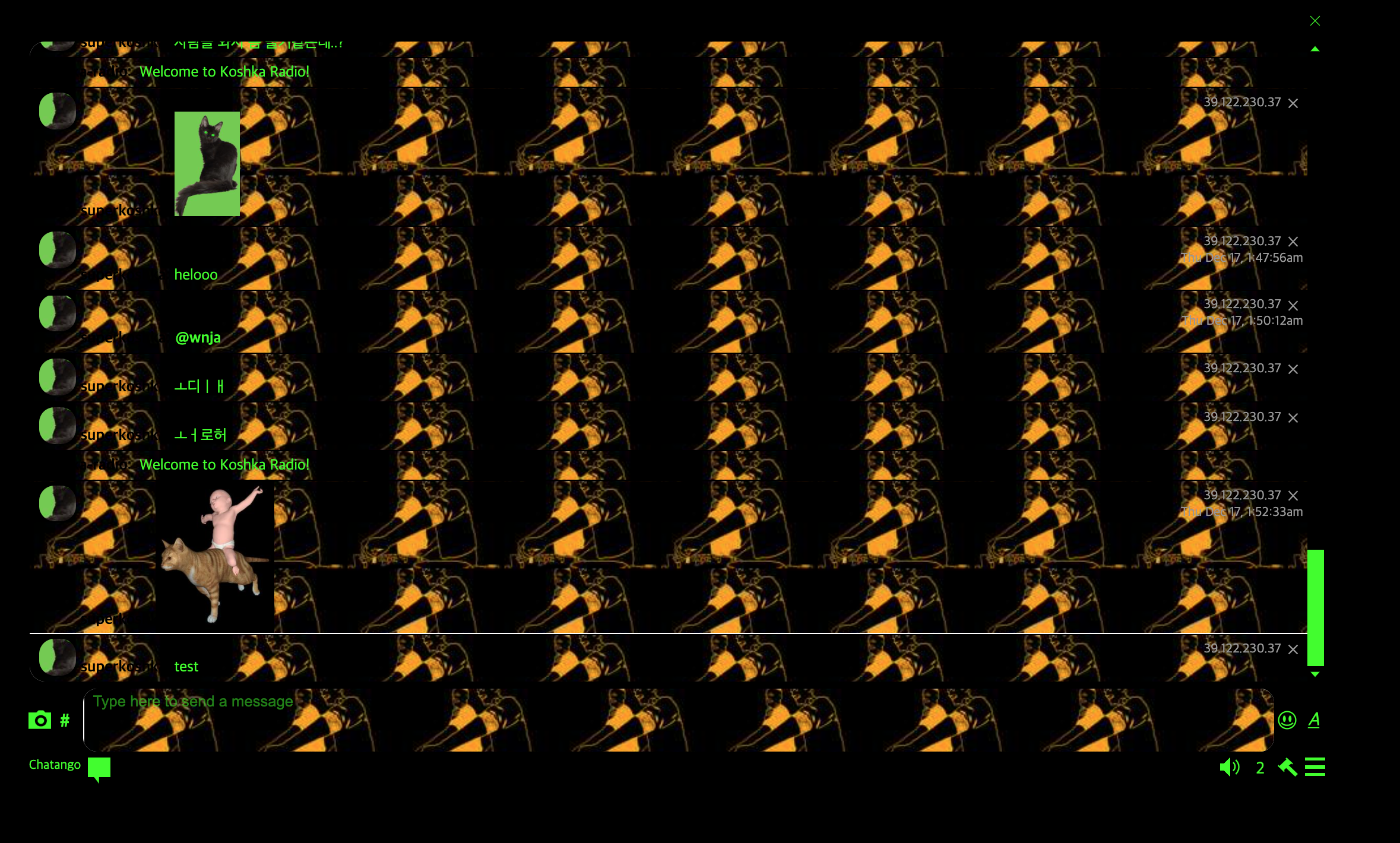 chatango.com์์ ๋ฌด๋ฃ๋ก ๊ฐ๋ฅํ๋ค. ๋์์ธ ์ปค์คํฐ๋ ๋ฌด๋ฃ๋ผ๋ ๊ฑธ ๊ฐ์ํ๋ฉด ๊ฝค ์์ ๋ก์ด ํธ์ด๋ค.