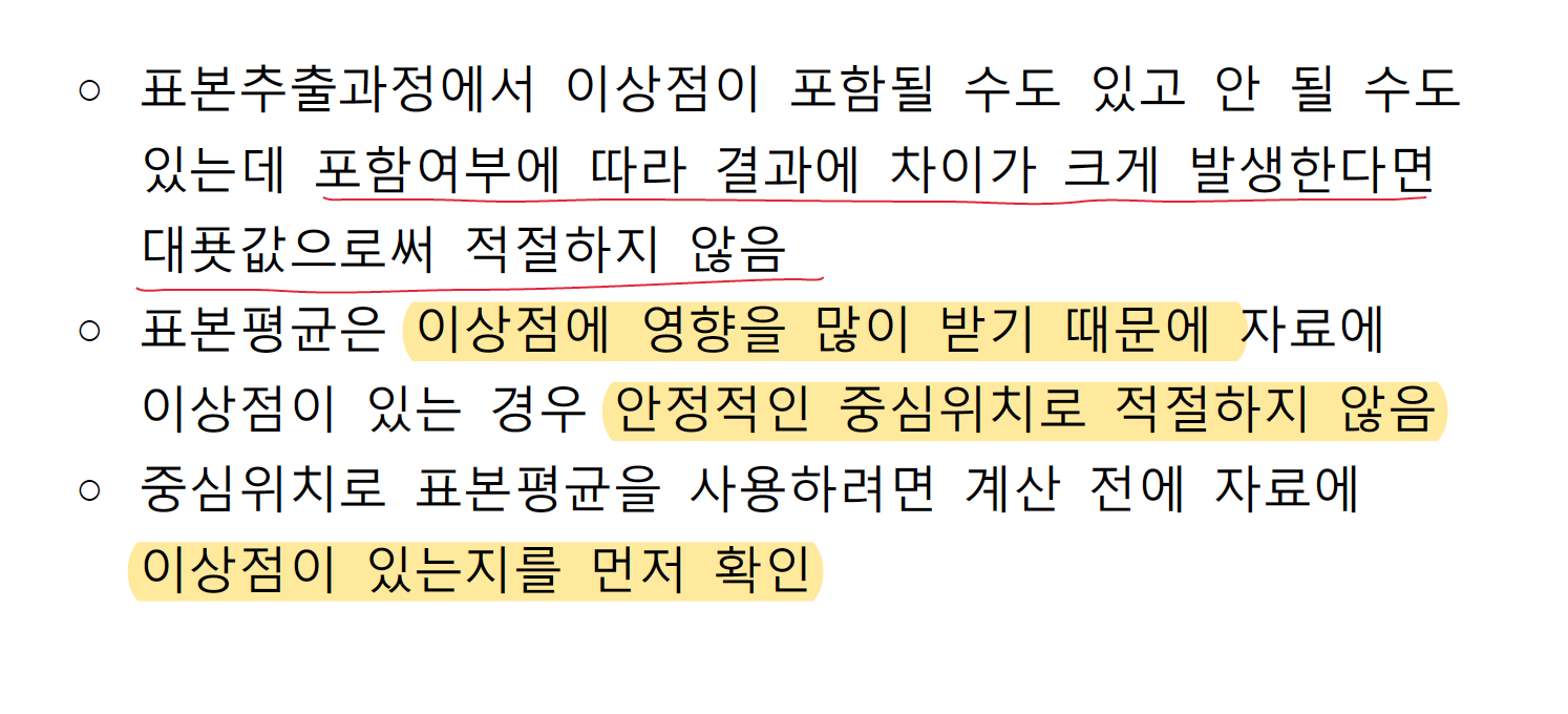 π μ΄μμ (outlier)μ λ‘λ²μ€νΈ(robust)ν 'νλ³Έμ€μκ°'
