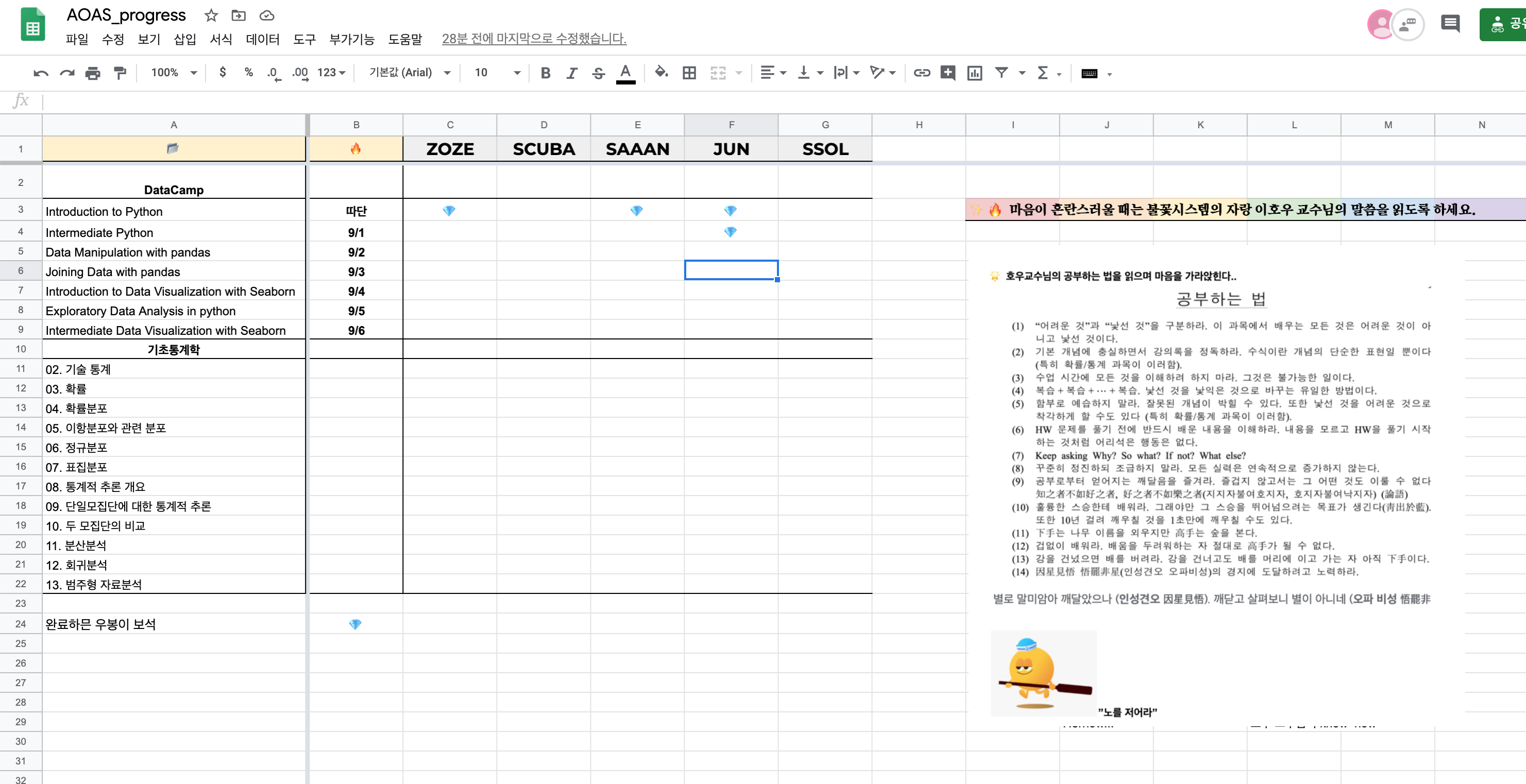 AOASλ κ΅¬κΈ μ€νλ λμνΈλ₯Ό μ°Έ μ νμ©νλ€. νμΌλ‘ μ¬λ¬λ² μ€νλ λμνΈλ₯Ό μ¬μ©νλ©΄μ, μμΌ shared docsμ μμ λκ° μλνλ€λ κ²μ λλλ€. μ€λλ AOASλ μνλλλ‘ λλ±λλ± νμ νμ λ§λ€κ³ , λ°μ΄ν° 리ν°λ¬μλ₯Ό ν₯ν μ μ₯ν μ€λΉ(?)λ₯Ό λ§μ³€λ€.