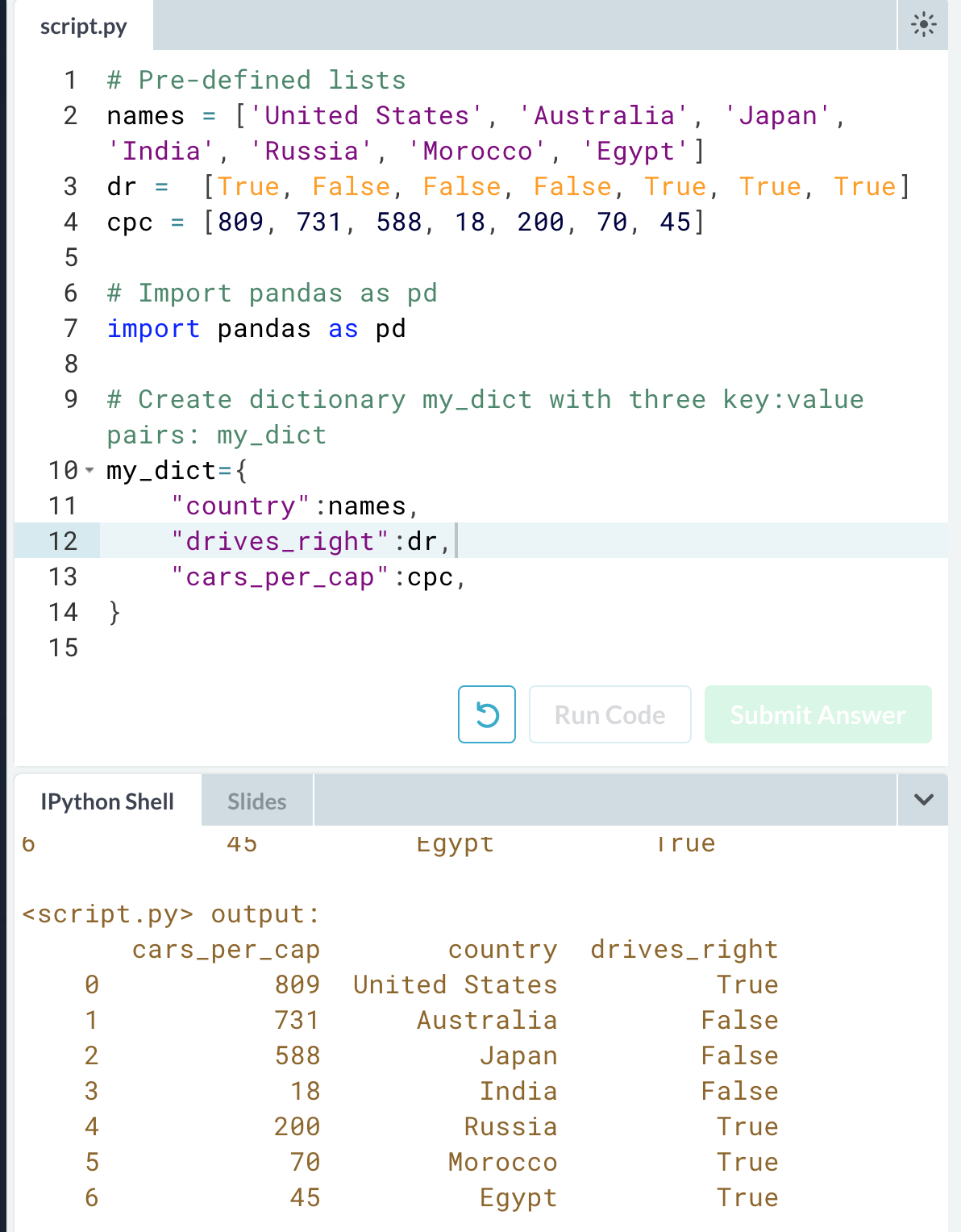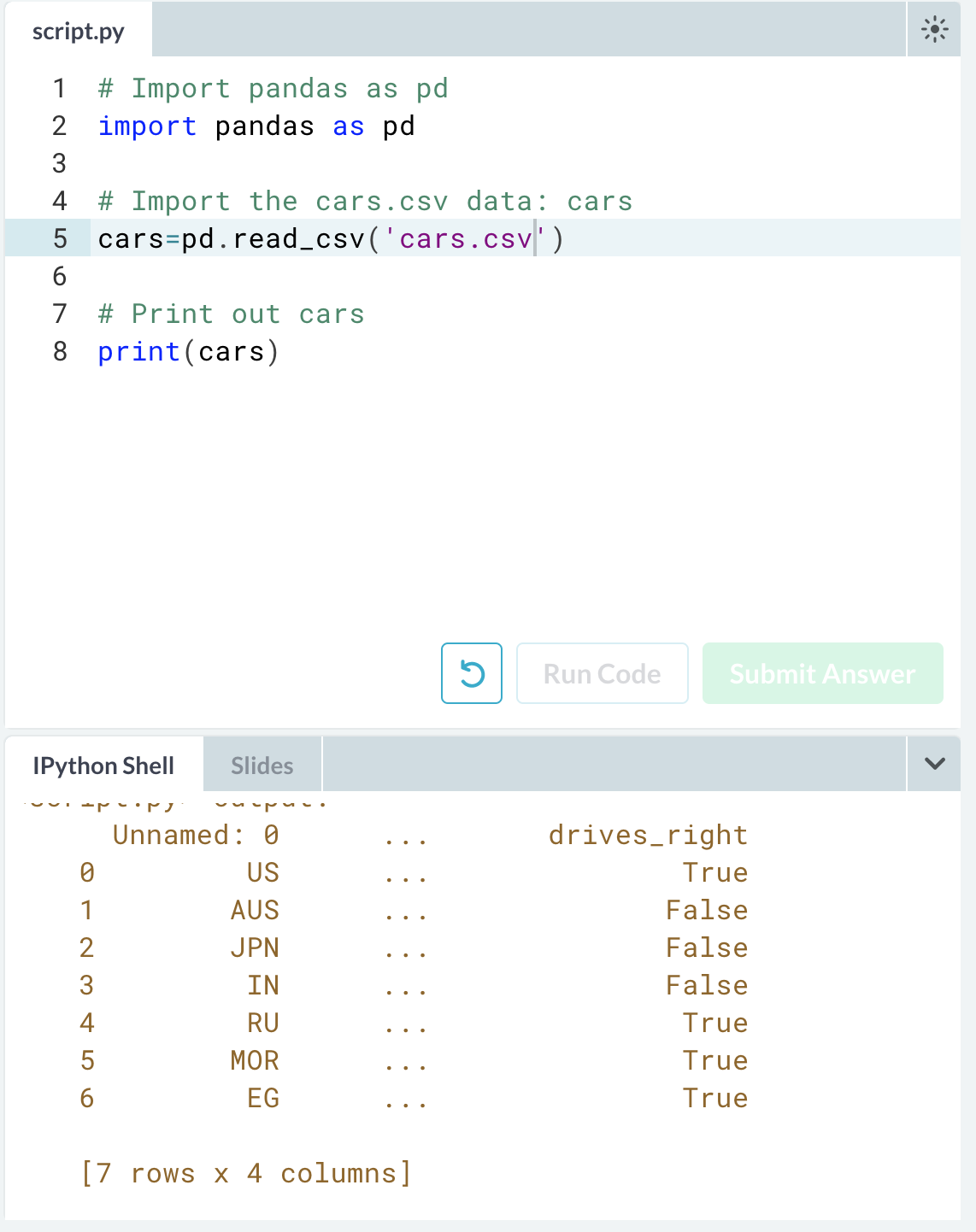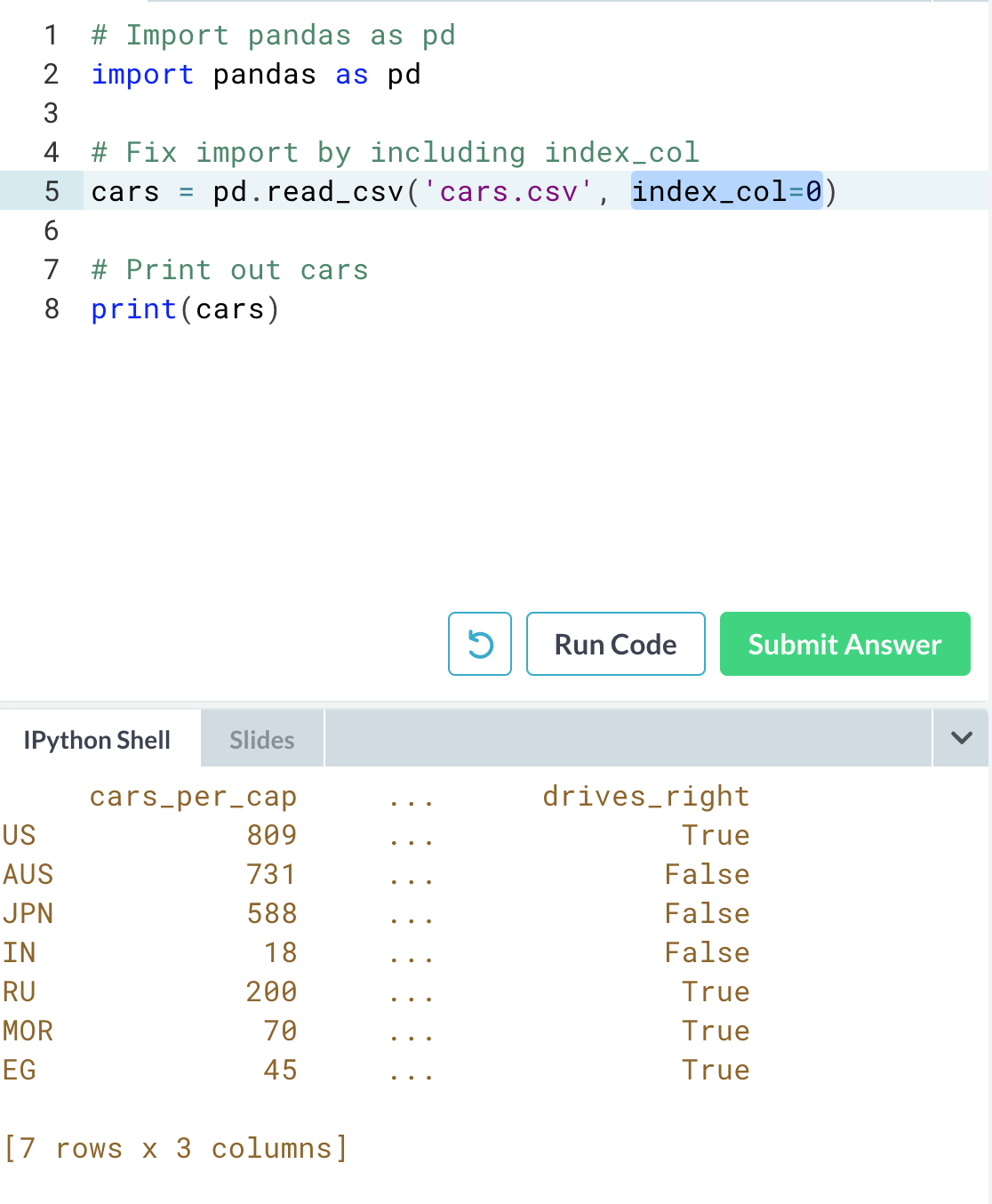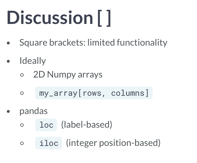 In the video, you saw that you can index and select Pandas DataFrames in many different ways. The simplest, but not the most powerful way, is to use square brackets.