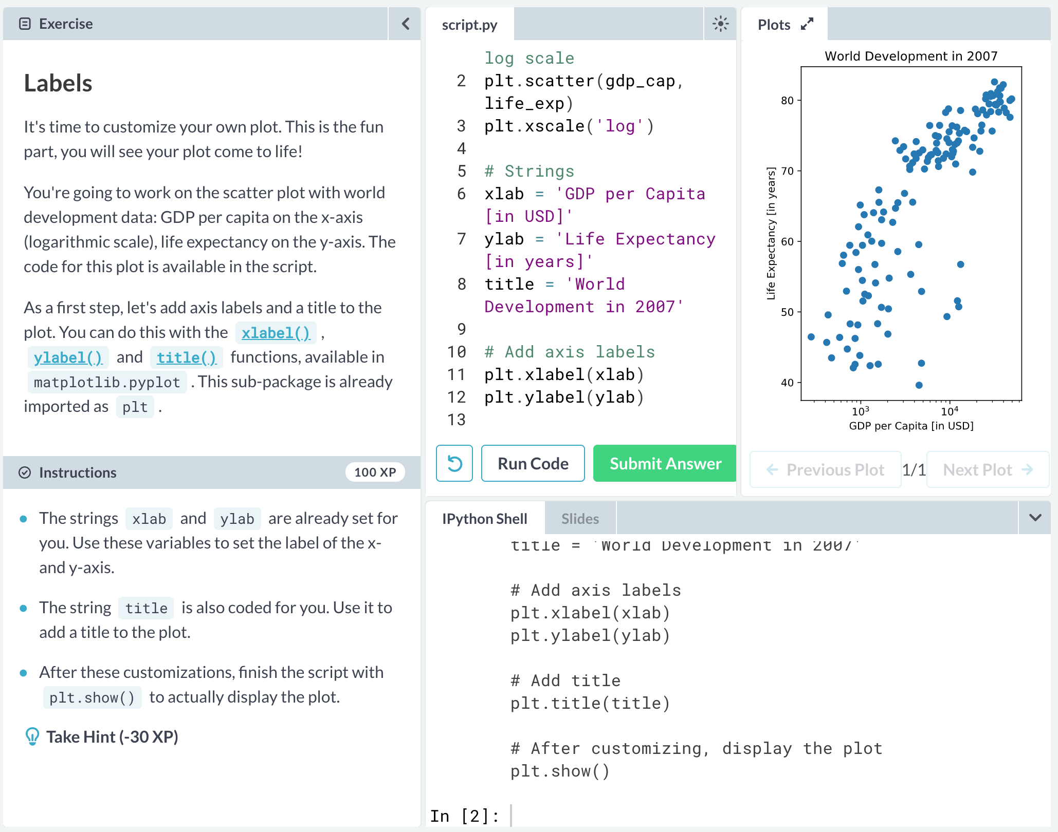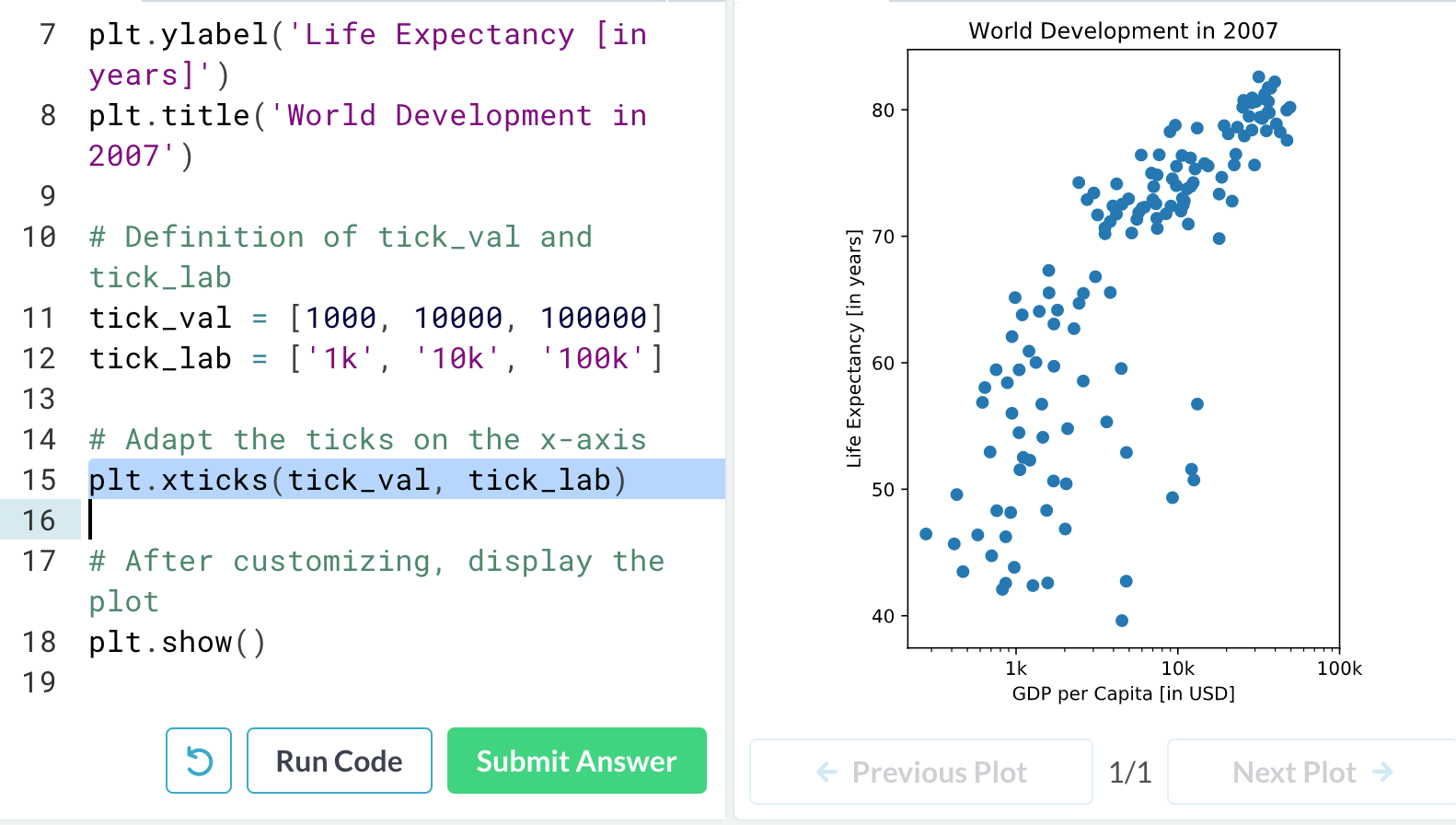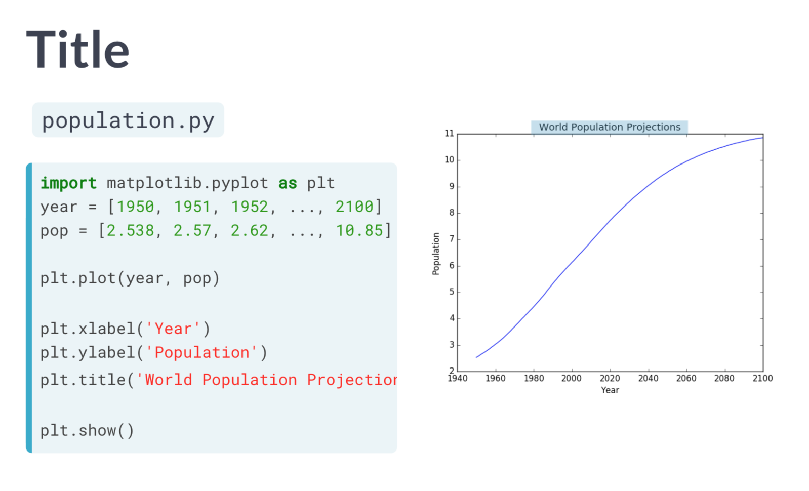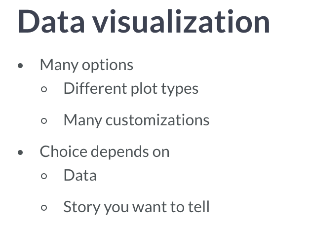 different plot types * (colors, shapes, .. etc. ) customizations * Data * story
