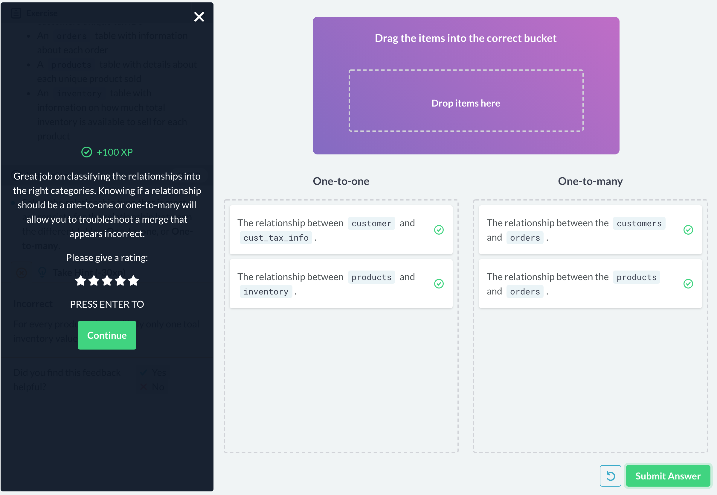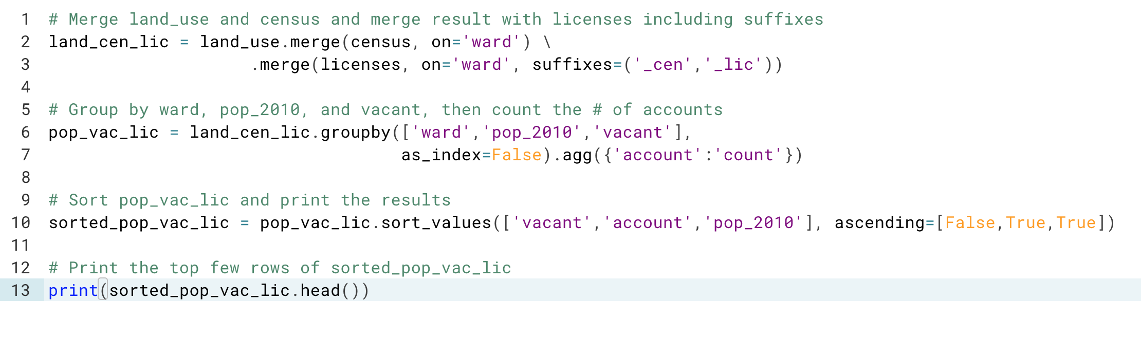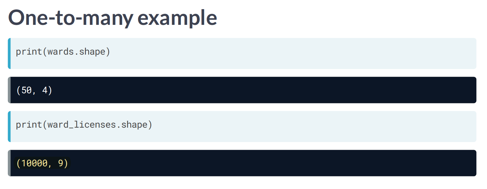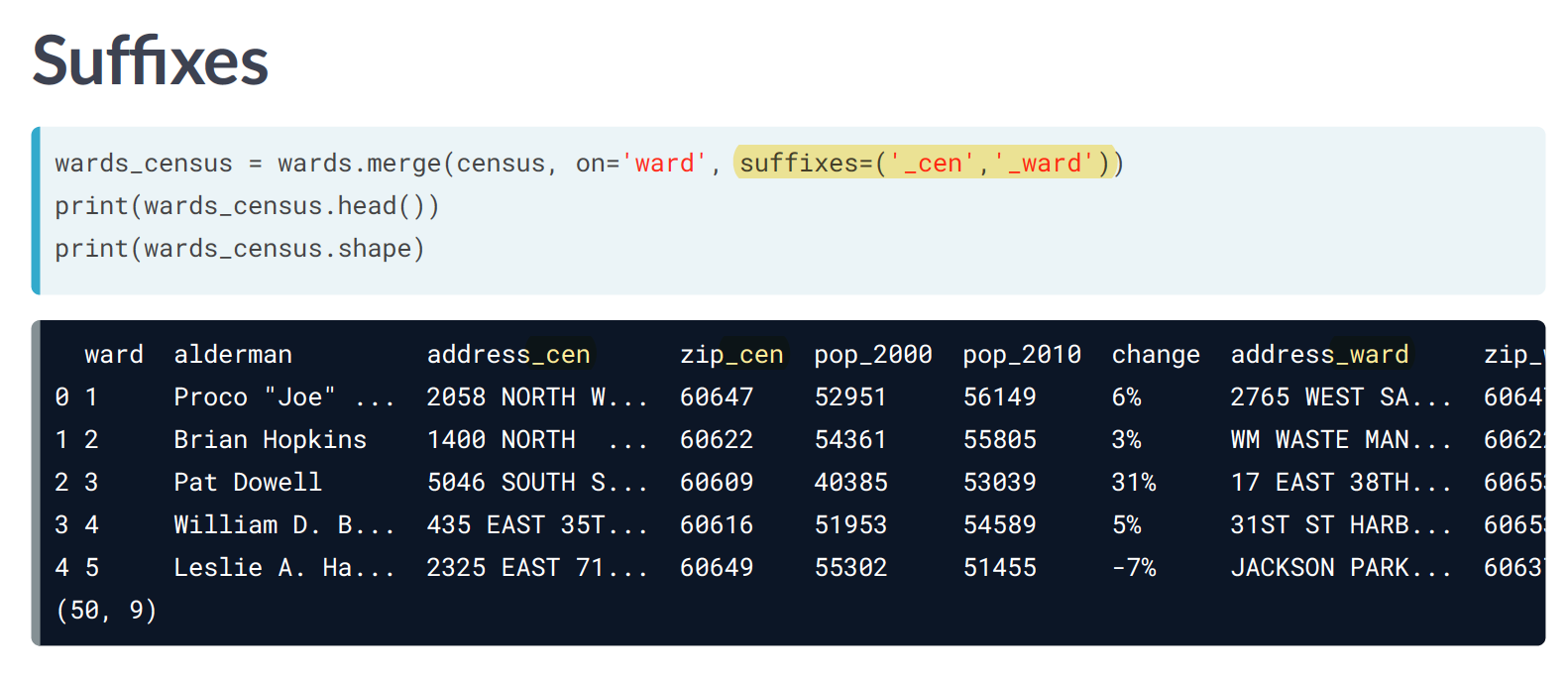 Great job putting your new skills into action. You merged multiple tables with varying relationships and added suffixes to make your column names clearer. Using your skills, you were able t